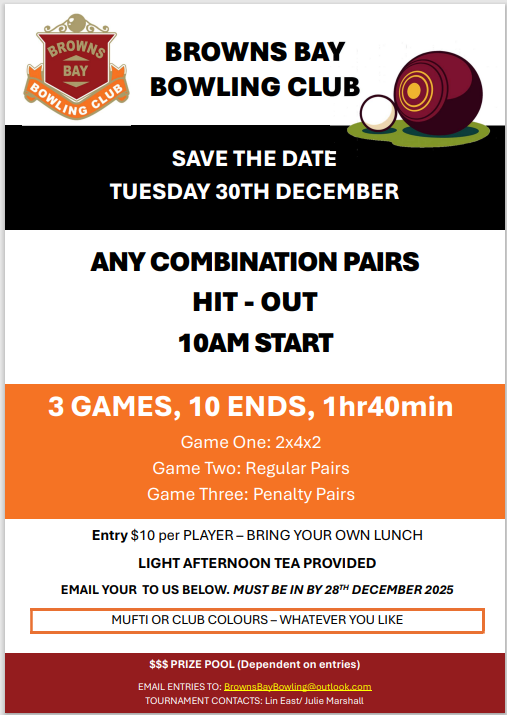 Any queries email: BrownsBayBowling@outlook.com